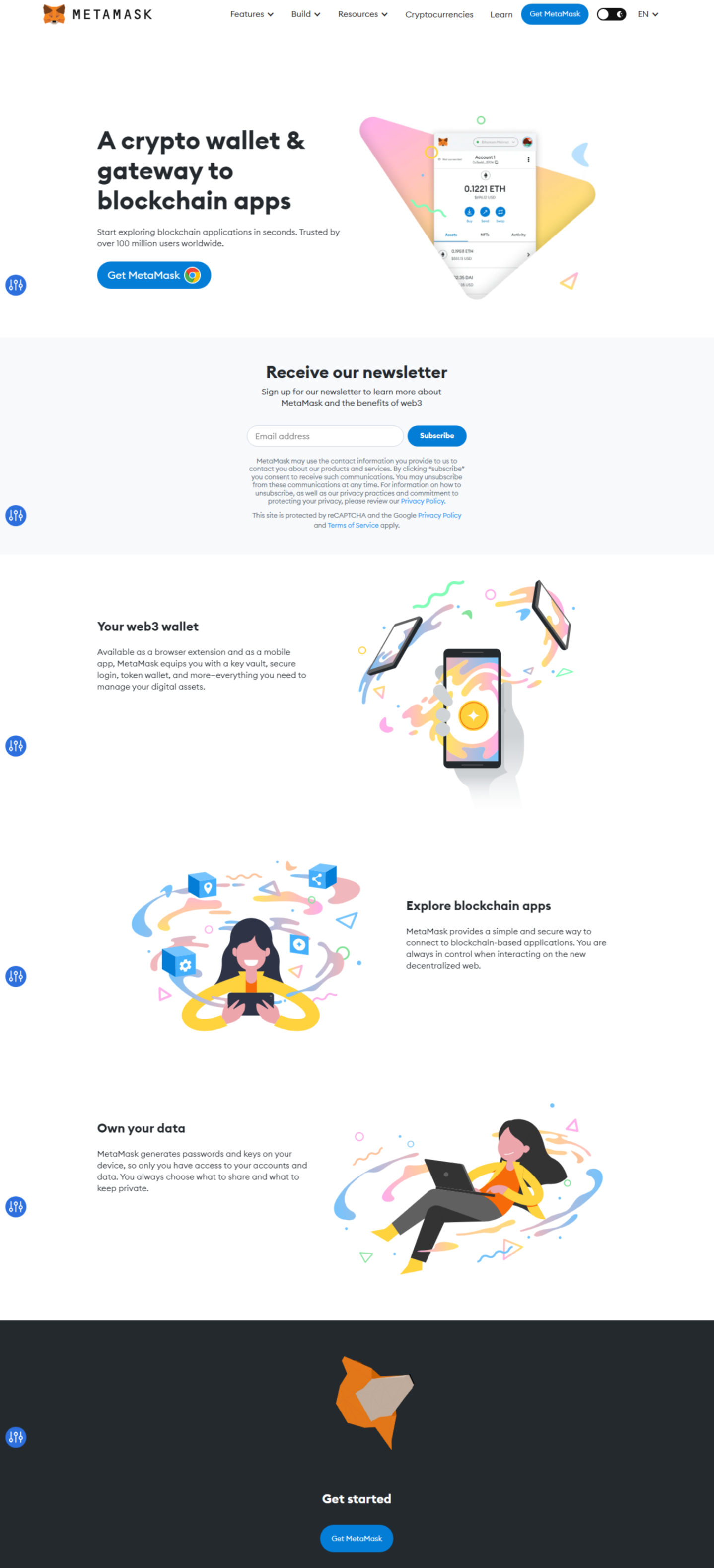 To get started, visit MetaMask.io and download the wallet extension for your preferred browser (Chrome, Firefox, Brave, or Edge) or download the mobile app for Android and iOS.
